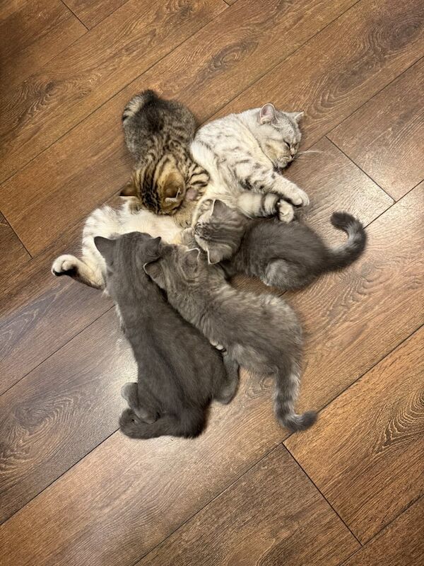 Our beautiful Fawn British Shorthair Mummy cat Lola (BSH P) has given birth to six gorgeous, beautiful, chunky, healthy, fawn Kittens! Their Dad Luca is also our pet and he is a gorgeous Lilac British Shorthair (BSH C) . Mum and dad are pictured in the last 3 photos. All with lovely temperaments, playful, cuddly and absolutely adorable! Looking like real life teddy bears, round