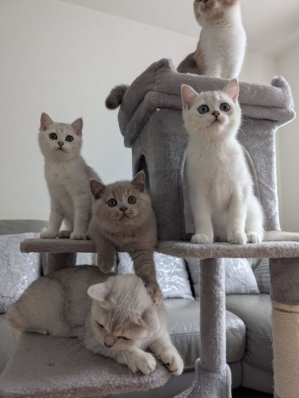 British short hair 5 beautiful kittens 2 boys 3 girls they are all independent - eating on their own, using the litter tray confidently, and ready to bring joy to their new families. All kittens have been dewormed, de-flead, and litter-trained. They'll be ready to bring warmth and joy to their new families kittens have been raised in a loving home around kids and dog making