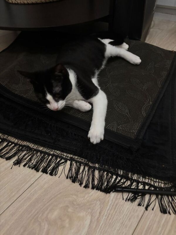 Adorable Tuxedo Kitten Looking for a Loving HomeMeet this sweet black-and-white tuxedo kitten! He’s a young, affectionate boy with a soft, sleek coat and bright curious eyes. He loves exploring, lounging on comfy cushions, and keeping you company around the house.